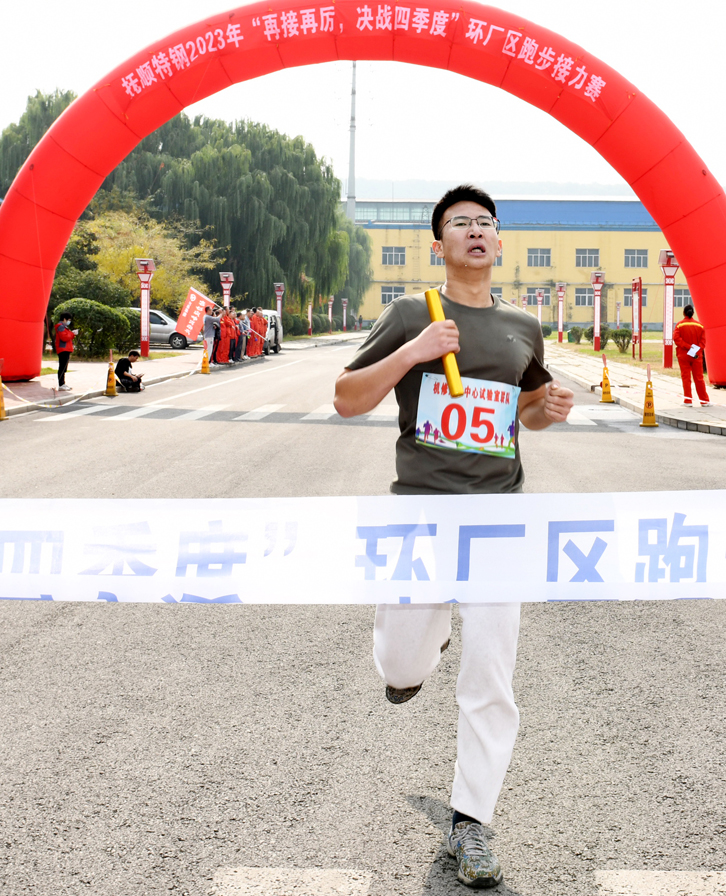 秋風(fēng)送爽、歌聲陣陣。10月14日上午,撫順特鋼在1號(hào)門廣場舉辦了2023年“再接再厲,決戰(zhàn)四季度”跑步接力賽。來自撫順特鋼20家單位的86名員工參加了本次跑步比賽。他們以團(tuán)體接力賽和個(gè)人耐力賽的形式,充分展現(xiàn)了員工團(tuán)結(jié)拼搏,不畏困難,熱愛運(yùn)動(dòng),積極向上的精神風(fēng)貌。撫順特鋼黨委書記、第一副總經(jīng)理曹斌,常務(wù)副總經(jīng)理、黨委副書記、紀(jì)委書記、工會(huì)主席祁勇,副總經(jīng)理孫大利、景向及各單位員工代表共300余人觀看了跑步接力賽。
