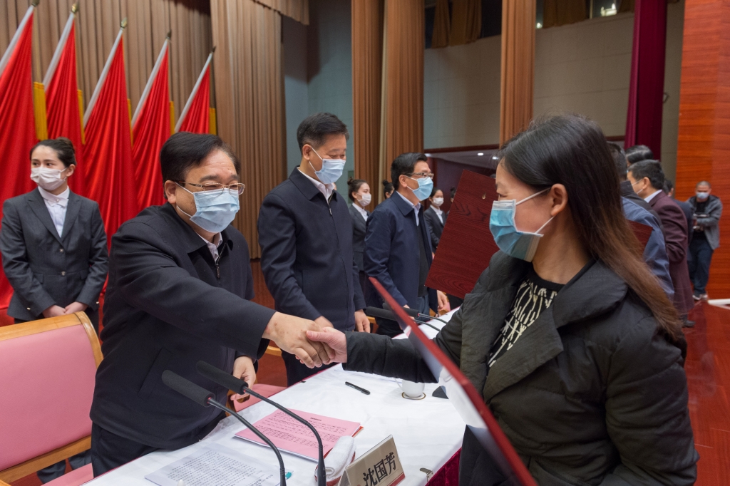 沈國芳向優(yōu)秀企業(yè)、先進單位和個人表示祝賀,向奮戰(zhàn)在疫情防控一線、經(jīng)濟社會發(fā)展一線的全體黨員干部表示衷心感謝、致以崇高敬意。他指出,奮進的道路上需要榜樣,趕超的征途中離不開先鋒。樹立“好榜樣”,就是為了向先進學(xué)習(xí)、向標(biāo)桿看齊,延續(xù)“萬眾一心加油干”的旺盛勢頭;進行“大動員”,就是為了號召全市上下奮力拼搏、銳意進取,以“快馬加鞭未下鞍”的昂揚姿態(tài),共同點燃“開放再出發(fā)”的火熱激情,全面掀起“項目提速年”的澎湃熱潮。